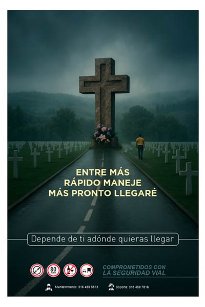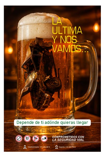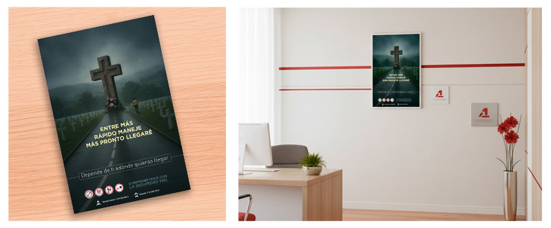 Serie de 3 pósters + volantes. Concepto, fotomontaje y acabado con IA para mensajes claros: velocidad, alcohol e inspección. Bilingüe ES/EN.